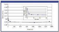 Equilibration time. To understand the time required for the headspace to come into equilibrium with the sample, water activity was measured as a function of time for the products shown in Figures 4 and 5. The results for Capsule A indicated that equilibration occurred within 10 minutes and no significant changes occurred over the subsequent 12 hours (see Figure 4). Figure 5, which includes two typical tablet formulations and an enteric-coated aspirin tablet, shows that a 30-minute equilibration time was appropriate for the tablet formulations. A longer equilibration time would be needed with the enteric-coated formulation for the same degree of accuracy. In general, the authors have used an accuracy of ±0.02 aw as being acceptable. Another alternative would be to crush the enteric-coated tablet, but this procedure needs special precautions.
