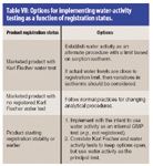 Table VII: Options for implementing water-activity testing as a function of registration status.