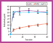 Figure 3: Dissolution rate of ibuprofen raw material (Ib) in water and phosphate buffer pH 6.2 and 7.2.