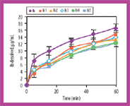 Figure 4: Dissolution rate of ibuprofen raw material (Ib) in water and the modified crystals (Ib1âIb6) in water.