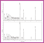 Figure 2: Powder x-ray diffractometry of ibuprofen raw material Ib (top) and the modified crystals, exemplified by Ib6 (bottom).
