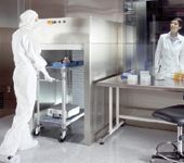 Terra's pass-through features dual-side, touchpad-activated roll-up doors that are designed to enhance cleanliness, eliminate clearance requirements, and simplify operation. Sealed motorized lifters and ultrasmooth polyethylene tracks ensure clean operation. Electronic interlocks prevent cross contamination, and infrared beams stop motion if an object protrudes into the door track. Terra Universal, Fullerton, CA • www.terrauniversal.com • tel. 714.578.6000