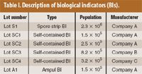 Table I. Description of biological indicators (BIs).