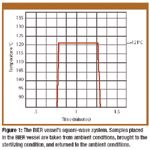 The BIER vessel establishes a steady-state condition within a small sterilization chamber and relies on the rapid insertion and removal of samples for the conduct of the D-value determination. In its purest form, the BIER operates as a square wave system, in which the samples are instantaneously taken from ambient conditions, brought to the sterilizing condition, and returned to ambient conditions (see Figure 1). BIER-vessel standards for saturated steam mandate a maximum of 10 s for the come-up and come-down steps.