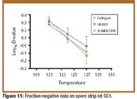 Fraction negative. In each resistometer, D 121-values were determined (in triplicate) on the spore-strip BIs. In the Fedegari resistometer, D 124 and D 129-values were determined (in triplicate) on the spore-strip BIs.