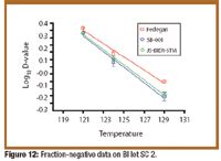 Fraction negative: self-contained BI. Fraction-negative data collected on the self-contained BI lot# SC1 are shown in Table V and Figure 11. Fraction-negative data collected on the self-contained BI lot SC2 are shown in Table VI and Figure 12. Fraction-negative data collected on the self-contained BI lot SC3 and SC4 are shown in Table VII.