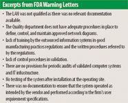 The sidebar "Excerpts from FDA Warning Letters" provides some insight into the areas that were closely examined during site audits in 2004.