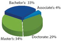 Education and professional work experience. Sixty-three percent of employees have a degree higher than a bachelor's degree (see Figure 2). The most common fields of study were pharmaceutics or pharmacy (22%) and analytical chemistry (14%). Nine percent of respondents earned degrees in engineering, and 9% said they had studied in a field unrelated to pharmaceutical science or industry.