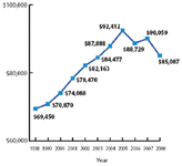 Overall results. The mean base annual salary was $85,087 for all respondents, which is down from an average of $90,059 in 2007 and from the 2006 average of $88,729. Employees working in the US earned an average of $98,203. Overall, employees reported an average of $10,892 in additional income from their principal employer, including bonuses, summer work, and grants, and an average of $1808 in additional income from other professional work.