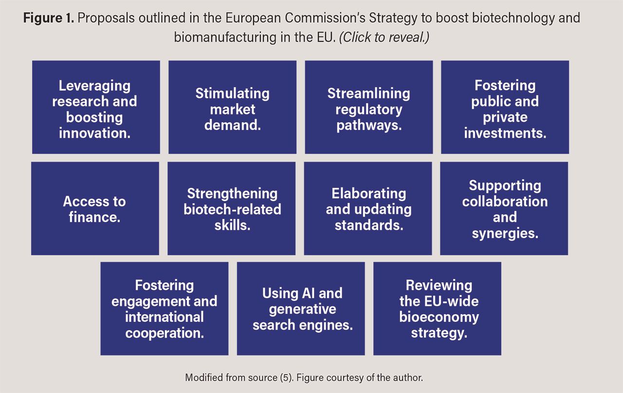 Figure 1. Proposals outlined in the European Commission’s Strategy to boost biotechnology and biomanufacturing in the EU. Figure courtesy of the author