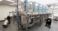The system is currently dedicated to commercial-scale production of a single, approved (but unspecified) therapeutic. It went into production in March 2006, going from ground-breaking to the first drop of product in nine months, including three weeks for validation.