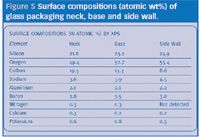 Figure 5: Surface compositions (atomic wt%) of glass packaging neck, base and side wall.