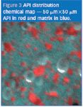 Figure 3: API distribution chemical map - 50 μm x 50 μm API in red and matrix in blue.