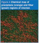 Figure 4: Chemical map of precipitate (orange) and filter (green) regions of interest.