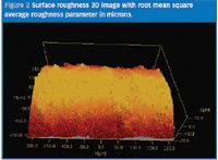 Figure 2: Surface roughness 3D image with root mean square average roughness parameter in microns.