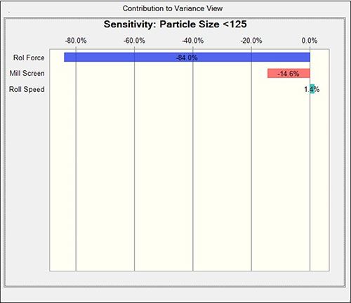 First, risk assessment methods were applied to all potential input variables, and three were found to be critical to desired response variables: rolle speed, roller force, and screen size. The following particle sizes were determined to be optimum for each of those variables: