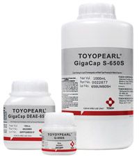 TOYOPEARL GigaCap Q-650S is a strong anion exchange resin that combines high resolution with high binding capacity for oligonucleotide separation. TOYOPEARL GigaCap S-650S is a strong cation exchange resin and provides high resolution for better separation of process impurities and aggregates.