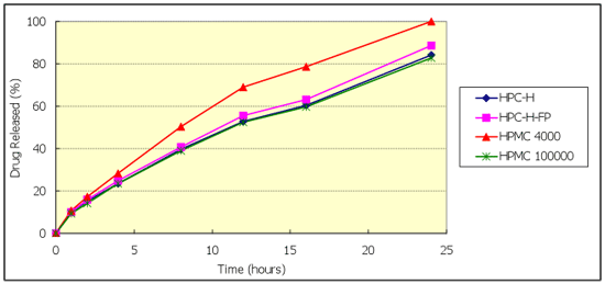 High viscosity grade Nisso HPC-H (hydroxypropyl cellulose) offers advantages as a controlled release polymer when compared to HPMC in a sustained release matrix tablet application.