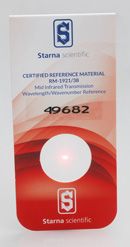 The references are available with two film thicknesses. For qualifying MidIR - FTIR instruments, Starna RM-1921/38 is 38µm thick. Another version, RM-1921/65, is 65µm thick and has some additional peaks in the NIR.