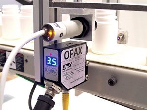 Control and verification of a light barrier in pharmaceutical packaging is crucial, because pharmaceuticals may be degraded by the amount of light (both visible and non-visible) that passes through them, shortening their shelf life. The OPAX opacity sensor verifies the opacity of packaged goods while outputting a signal to remove the defective unit from the line. The system can be used for various types of bottles and containers.