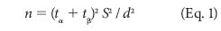where tα and tβ are the one sided t distribution values for the given α and β risk levels selected and S2 is the variance of the total product, process or method and d is the difference to be detected.