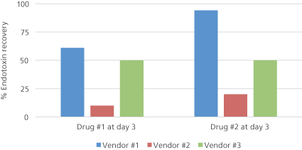 Figure 1. Endotoxin recovery variability utilizing different limulus amebocyte lysate vendors.