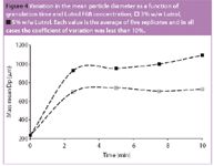 The effect of granulation time on the mean particle diameter is shown in Figure 4. The mean particle diameter does not change significantly after 2.5 min suggesting that granule growth has reached equilibrium after this time period. As previously discussed, Lutrol F68 is a low molecular weight binder with a high degree of mobility. After 2.5 min the binder has diffused throughout the entire fluidized bed of Ballotini and formed liquid–liquid bridges. These liquid-bridged ballotini form a flocculated system, which continues to grow, thus forming defined agglomerates.