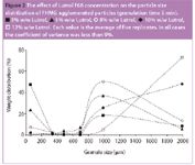 The second system investigated in this study involved the use of glass beads as a model pharmaceutical filler and Lutrol F68 as a model meltable binder. The effect of varying binder concentration on the particle size distribution of the powder bed is shown in Figure 2. Lutrol F68 has a relatively low viscosity and, therefore, when in the molten state has a high degree of mobility resulting in diffusion to the outer surface of the growing agglomerates.16
