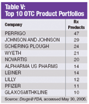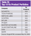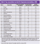 Table II: Top corporations by total US-dispensed prescriptions, 2005