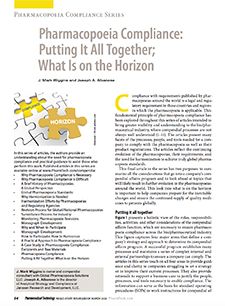 When referring to this article, please cite it as J.M. Wiggins and J.A. Albanese, “Pharmacopoeia Compliance: Putting It All Together; What Is on the Horizon," Pharmaceutical Technology Regulatory Sourcebook eBook (March 2020).
