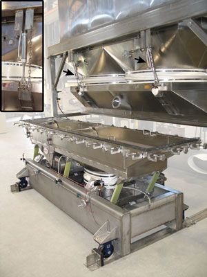 Vibrating fluid bed dryers and coolers from Witte are now offered with an optional pneumatic cover lift. Available on the company's fine particle drying systems that feature an integral baghouse dust collector set atop the drying zone, the new pneumatic cover lift automatically raises the dryer cover at the push of a button without any tools to allow one person to roll the dryer forward on rails out from under the dust collector. Once rolled forward, the dryer interior may be fully accessed for easy cleaning and inspection. Developed as a convenient, ergonomic way to access the dryer, the pneumatic cover lift eliminates the need for an on-site overhead crane or other lift system to permit dryer installation in a variety of facilities and line configurations at reduced cost.