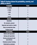 Table II: Scoring scheme for probability, severity, and ability to detect.