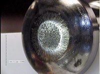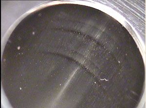 Die wear is also quite a common occurrence, especially when compressing hard, abrasive granules and powders. Die wear is also known as “die ringing” because the wear takes place in the area of the die bore where the tablet is compacted. The wear appears in the bore as a double ring (see Figure 4) due to the upper and lower punch tips flexing and bending within the clearance between the tips and the die bores during full compaction. The granule reacts between these surfaces leading to compressive and abrasive wear. When the wear becomes significant, it will lead to problems such as tablet capping or delamination and increased tablet ejection forces. This type of wear can be reduced by using different zones in the die bore where the tablet is compacted or by the selection of a harder, more wear-resistant die material.