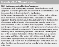 While these programmes are well within FDA guidelines, they are expensive and can introduce an increased risk of a regulatory finding as a result of the difficulty in meeting the PM schedule. Although the actual tasks and schedules are not specified in the GLP standard, laboratories typically commit to an aggressive timetable in their quality system documentation, which they are then required to meet. Missed PMs are easy findings in an audit and numerous occurrences indicate a pattern of noncompliance that might lead to an enforcement action. Overly vigorous schedules are costly, and likely to have a negative net benefit with regard to cost, compliance and reliability.
