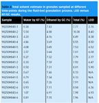 Table 4 Total solvent estimate in granules sampled at different time-points during the fluid-bed granulation process. LOD versus KF/GC results.