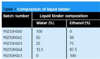 The sampling times are depicted as suffixes to the batch identification numbers (eg., 90250H040-x), where 'x' represents the sampling time (i.e., '1' for preheat; '2' for prespray; '3' for 20 min; '4' for 40 min; '5' for end of spray (60 min of granulation) and '6' for dried granules). Part of each sample was tested for loss on drying (LOD) using the Computrac Max 200 Moisture Analyzers (Arizona Instrument LLC; Tempe, AZ, USA). The remaining part of each sample was sealed into scintillation vials for further analysis. The granulating fluid was composed of purified water, absolute ethanol or hydro-alcohols of different composition (Table 2). As the boiling point and latent heat of vaporization of the granulating fluids are different, this experiment is expected to provide an insight into the kinetics of pseudo-polymorphic conversion.