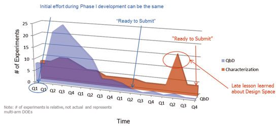 Following the CMC QbD Development Program allows definition of a design space earlier in the development program. This means that even the earliest development experiments can be built upon and leveraged as the product advances towards commercialization.