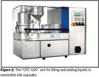 Liquid in a capsule is a method for not only improving the bioavailability of poorly water-soluble compounds, but also for enhancing low-melting point and low-dose–high-potency drug candidates. The challenge of this approach is solubilizing the API in a favorable surfactant, solvent, and cosolvent system. When it comes to solubility, the rule of thumb is "like dissolves like." Physical mixtures, solid solutions, solid dispersions, or a self-microemulsifying drug-delivery system may be used (7). The developed system can be filled into appropriately sized capsules and banded (e.g., STI Lab Model capsule bander, Schaefer Technologies, Indianapolis, IN) or filled and sealed (e.g., "CFS 1200" encapsulator, Capsugel, see Figure 2).