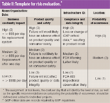Data should be entered into a form with entry fields for risk descriptions, business (continuity) impact, product quality, safety, and compliance impact, as well as probability of occurrence. An example is shown in Table II and the various impacts are described below.