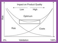 The principle is quite clearly illustrated in Figure 1. Costs for validation increase when going from no validation to 100% validation. Full validation for a COTS system would mean, for example, the testing of each function of the software under normal and high load, across and beyond the expected application range, and this for each possible system configuration. In addition, whenever the system is changed, may it be computer hardware, operating system, or application software, full revalidation would require that the same tests be rerun.