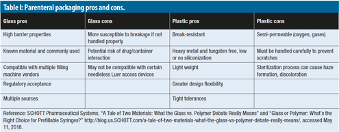 Traditional glass and polymeric materials compete for market share in primary packaging for parenteral drug products.