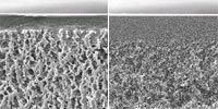 Figure 2 A: Composite regenerated cellulose membrane. B: Composite polyethersulfone membrane. (In the UF membranes shown, the void structure has been eliminated.)