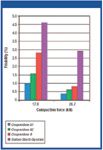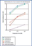 Once again, the tablets were evaluated for breaking force, friability, and disintegration (see Figures 8–10). At all compaction forces, the acetaminophen tablets with croscarmellose sodium were highly friable (>5%), so the results are not shown in Figure 9.