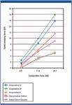 When representative placebo tablets with crospovidone A2, sodium starch glycolate, and croscarmellose sodium were placed in a Petri dish with a small amount of water, the relative ability of the various disintegrants to wick water into the tablet was observed (see Figure 7). One minute after contact with water, the tablet containing crospovidone A2 was fully hydrated and soft throughout because crospovidone quickly wicks water into the tablet. Meanwhile, the centers of the tablets made with sodium starch glycolate and croscarmellose sodium remained dry and hard. Although the tablet with sodium starch glycolate swelled, the outer edge appeared gel-like.