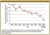 Figure 1: Annual percentage growth in global prescription pharmaceutical sales. (DATA FOR FIGURE 1 IS COURTESY OF IMS HEALTH)