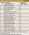 Two drugs were new entries to the top 10 global rankings in 2008, and two products fell out of the top 10. Johnson & Johnson's (J&J, New Brunswick, NJ) Risperdal (risperidone), ranked seventh in 2007, and Amgen's (Thousand Oaks, CA) Arnasep (darbepoetin alfa), ranked tenth in 2007, did not make the list of the global 10 top-selling prescription drugs in 2008 (see Table 1) (3). Two newcomers to the top 10 in 2008 were sanofi aventis's (Paris) Lovenox (enoxaparin), ranked tenth, and Remicade (infliximab), ranked eighth. Remicade is from J&J, Schering-Plough (Kenilworth, NJ), and Mitsubishi Tanabe Pharma (Osaka, Japan).