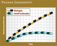 Shifting product mix. Reflecting increased generic incursion, fewer new chemical entities (NCEs) and smaller returns on NCEs, the CAGR of prescription drug sales from Big Pharma is expected to be only 1.8% through 2013, increasing from $366.6 billion in 2007 to a projected $407 billion in 2013, according to the research and consulting firm Datamonitor (1). As small-molecule drug sales are pressured, sales of biologics from Big Pharma are expected to rise, with biologics expected to account for 20% of Big Pharma's prescription drug sales by 2013. At the same time, sales from its core products are expected to fall by nearly 50% to $47 billion by 2013 (1).