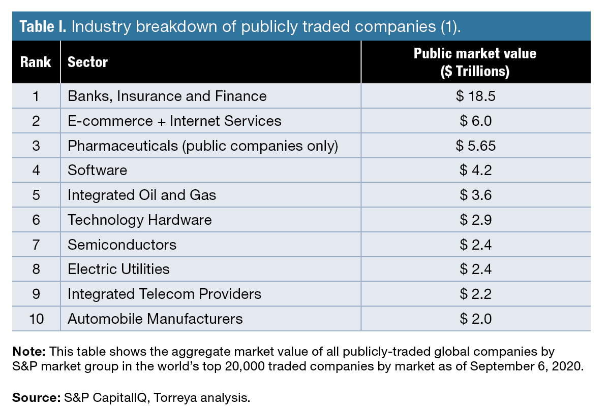 Table I. Industry breakdown of publicly traded companies.
