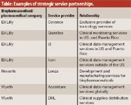 A particularly striking element of this outsourcing trend is the willingness of some major biopharmaceutical and pharmaceutical firms to give up their entire capability in one functional area and depend solely on a CRO partner. These are not just redundant or nuisance activities: they include mission-critical activities necessary for business operations and regulatory approval and compliance. These new pharma company–CRO relationships, which we have termed "strategic service partnerships," often involve the sale of one or more facilities and transfer of all of the pharmaceutical company's technical staff to the CRO.
