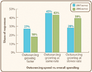How is your outsourcing spend growing relative to overall spending in your area? (Figure 2)
